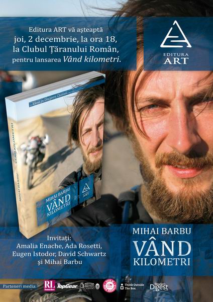 Editura ART vă aşteaptă mâine, 2 decembrie, la ora 18, la Clubul Ţăranului Român, pentru lansarea volumului “Vând kilometri” de Mihai Barbu.