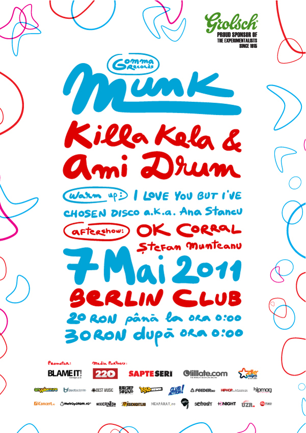 Pe 7 mai la Berlin Club, Str. Constantin Mille 4, se intampla MUNK (Gomma Records / DE), KILLA KELA & AMI DRUM (UK) cu sprijin local oferit de STEFAN MUNTEANU, OK CORRAL, I Love You but I’ve Chosen Disco.