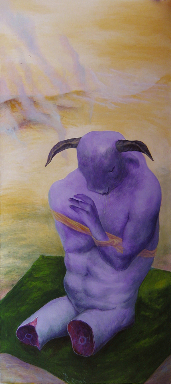 Alexandru Radvan - Adorator, acrilic pe panza, 200 x 90 cm, 2004