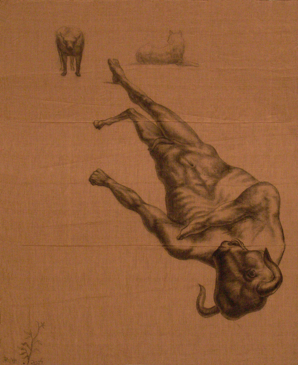 Alexandru Radvan - Turon, carbune pe panza, 350x300 cm, 2004