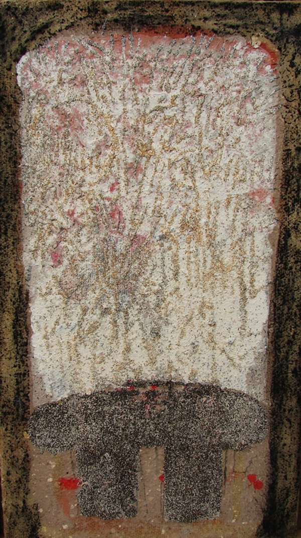 O poetică a scurgerii, a trecerii apei deasupra unei materialităţi informe, pământ, nisip, cadru teluric, este exprimată cu gingăşie, discreţie, emotivitate rafinată de Costin Brăteanu. O materialitatea ştearsă prin acţiunea apei dar devenită proteică sursă de inspiraţie plastica şi cu o simbolică fastuoasă. Lucrările dau impresia unui ecran pe care se proiectează indicii vagi ale existentului mediat în dimensiunea artistică. Este o proiecţie a timpului pe coordonatele paradigmaticului, păstrând doar urma trecerii ca o suita de notaţii emotive, a căror intensitate trăieşte prin colecţionarea formelor insesizabile, a urmei, ce poate deveni simbol, dar se mulţumeşte a semnaliza doar trecerea, contactul în spaţiu cu formele reamintirii evenimentului. Lucrările sunt meditaţii asupra existenţei vieţii ca o suită de împliniri fericite, o extensie a tandreţii şi intimizării atenuând prin expresia intimizării un produs cultural ce este consacrat emoţiilor copleşitoare.