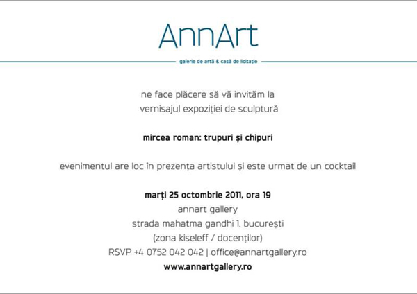 Pe 25 octombrie pra 19.00 a avut loc vernisajul expozitiei de sculptura Mircea Roman la AnnArt Gallery.