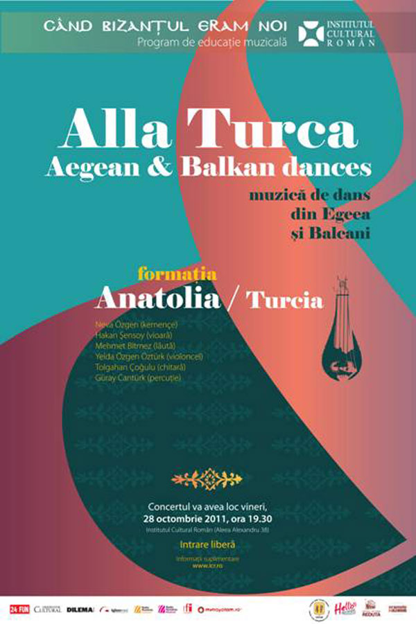 Vineri, 28 octombrie 2011, ora 19.30, la Institutul Cultural Român (Aleea Alexandru 38, Bucureşti) se călătorește muzical cu formația ANATOLIA.