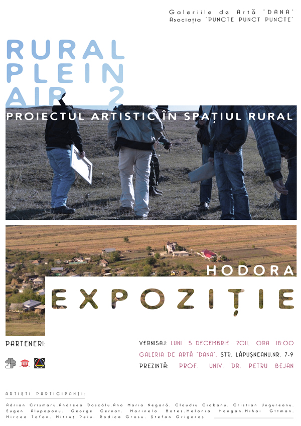Proiectul Rural Plein Air 2 – proiectul artistic în spațiul rural este al treilea proiect realizat în spații neconveționale după Urban Plein Air, prima tabără de pictură urbană și Rural Plein Air 1. Astfel, proiectul Rural Plein Air 2, întrunește propunerile a treisprezece tineri artiști ”emigrați” pentru o săptămână în localitatea Hodora, județul Iași, unde au căutat și au găsit subiecte ce pot fi traduse printr-un limbaj artistic. Conceptul de ”artă la țară” dorește să apropie și să împrumute practici specifice spațiului rural în raport cu cel urban și invers, precum și multiplele valențe simbolice pe care cele două spații pot să și le însușească.