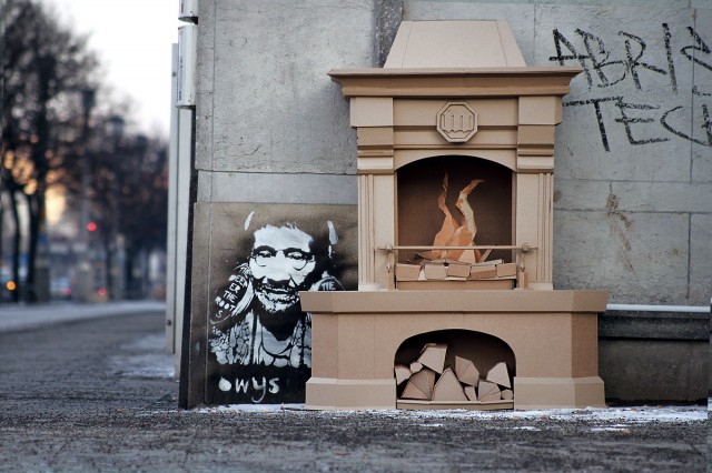 German art director and designer Bartek Elsner creates all kinds of clever sculptures using only humble cardboard. The pieces range from public street art, to large scale sculptures of trees, birds and even a gigantic internet device. You can see much more on his Paper Stuff blog and on Behance. (via who killed bambi)
