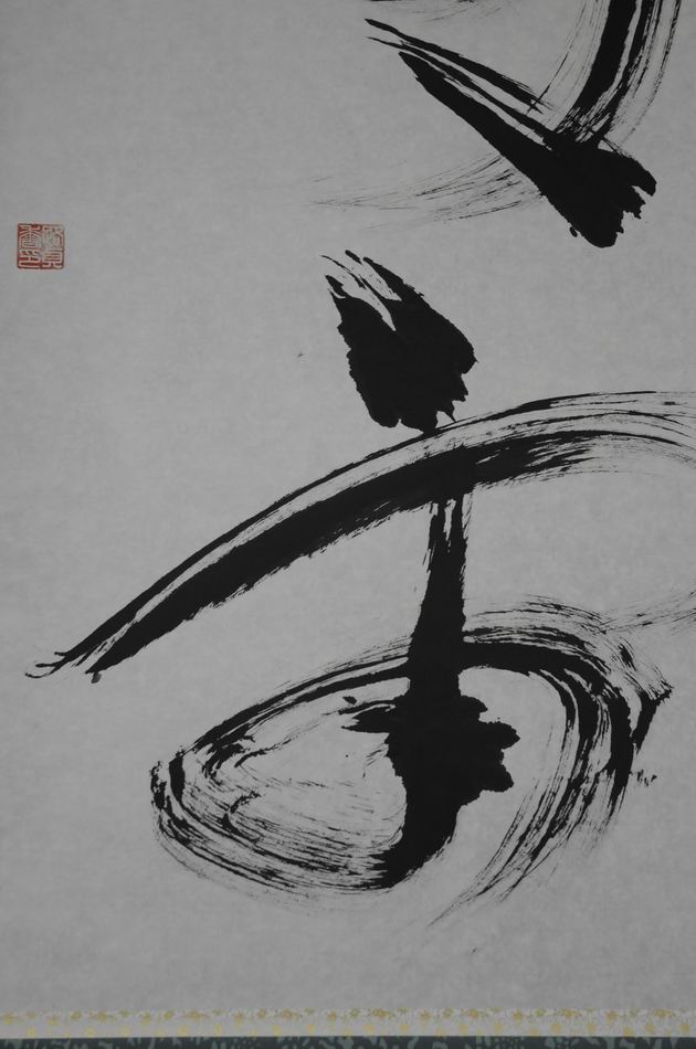 Seria de caligrame concepute în stilul artei caligrafice japoneze se deschide cu o meditaţie asupra timpului şi spaţiului, asupra vieţii şi morţii, asupra frumuseţii lucrurilor simple şi trecătoare… Urmând calea caligrafiei în care tuşul, pensula şi hârtia devin componente ale reflecţiei asupra lumii, exerciţiul spiritual propus îşi găseşte împlinirea prin tonalităţi şi expresii grafice specifice, în ritmul unei respirări.