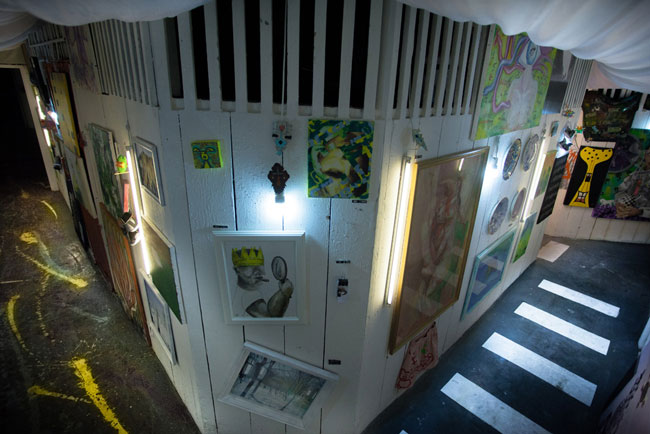 Tu, trecator plictisit, te vei mira cum a fost regandit functional spatiul. 438HALL se afla practic intr-un loc pana atunci nefolosit – culoarul dintre boxele locatarilor. Spatiul asta, de un secol al nimanui, devine pentru cateva momente, casa mintii tale. Chiar si vecinii (aceasta categorie sociala omniprezenta in viata sufleteasca a bucureste anului) au primit cu bucurie ideea de a avea un spatiul expozitional la ei acasa si sustin neconditionat proiectul artistic initiat de 438HALL.