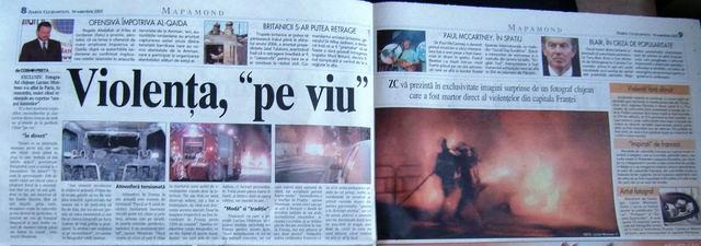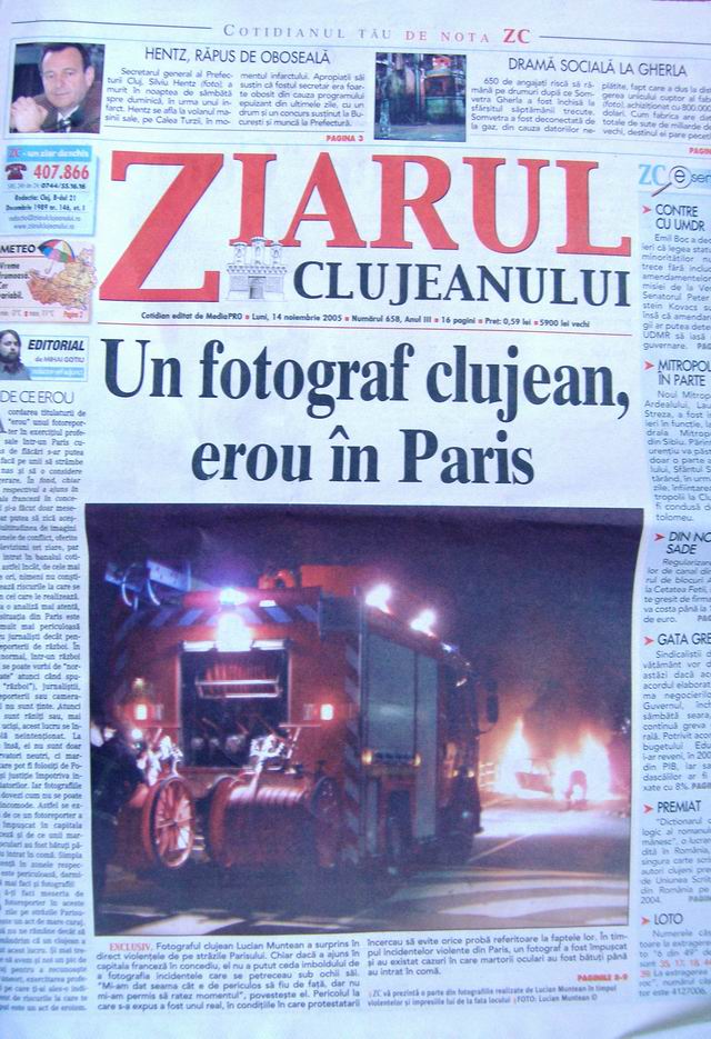 Acum 7 ani, in data de 8 noiembrie 2005, am fost martor la violentele produse la Paris. O masina a explodat la cativa metrii in fata mea, in timp ce ma indreptam spre locuinta din Poissy. Aceste fotografii au fost publicate de Mediafax si de Ziarul Clujeanului.