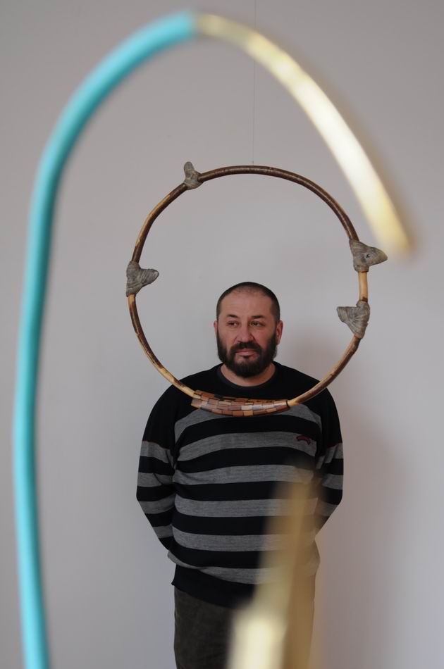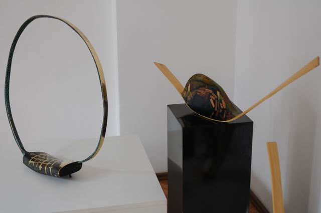 La parter, sculptorul Maxim Dumitraş o semnalează prin cele două torsuri din lemn, subtil stilizate, unul femeiesc şi celălalt bărbătesc, cu multiple sugestii semnificante: către ideea de cuplu, apropo de sărbătoarea primăvăratecă a „Dragobetelui”, dar şi către întreaga tradiţie sculpturală a corporalităţii, fixată categorial, ca tandem esenţializat, evocator la rîndul său al luxuriantei desfăşurări de carnalităţi şi concupiscenţe prin care artiştii au celebrat amorul de-a lungul secolelor şi mileniilor.