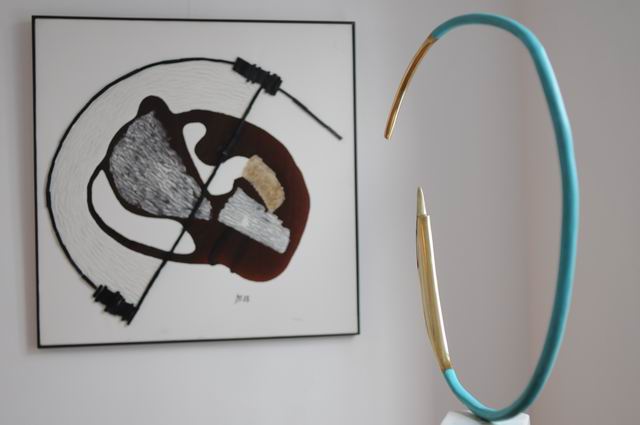 În jur, autorul distribuie piese din seriile simbolice la care a lucrat în ultimii ani, precum Absenţe încercuite ori Ieşire din absenţă: baghete întoarse pînă cînd, precum şarpele din poveste, îşi înghit coada, devenind cercuri, delimitînd spaţiul gol, fie vidat de miezul pe care nu ni-l mai putem decît închipui, fie în aşteptarea umplerii cu materie şi cu sens; mici obiecte cu aer nobil, cu încastrări ca de podoabe preţioase, purtînd în contururile lor statice amprentele mişcării, curburile unor gesturi încremenite, fixate în stop-cadre; ciudate compoziţii geometrice, jucate subtil între simplitatea formelor primare şi sofisticarea unor răsuciri neaşteptate, de unde senzaţia bivalentă, aşa-zicînd oximoronică, de abstracţie şi – la polul opus – de contribuţie la varietatea fenomenală a lumii concrete; şi cu alte variante desenate şi pictate, Maxim Dumitraş exprimîndu-se de-a lungul anilor în mai toate genurile, pe tot soiul de suporturi imaginabile și inimaginabile şi cu o multitudine de tehnici disponibile sau inventate, cu o excepţională mobilitate „meşteşugărească” şi creativă. De apreciat evoluţia sa atît de personală de la sculptura așa-zicînd „clasică”, trecînd prin numeroasele experienţe şi experimente de ambientalism la care l-a „obligat” decorul montan şi forestier în care trăieşte, în Nordul ţării, la Sângeorz-Băi şi în împrejurimi, cu spectaculoase intervenţii de land-art şi cu alte tipuri de interacţiuni cu spaţiul natural, pînă la delicateţea epurelor de acum, duse pînă la intensitatea calmă a reflecţiei filozofice în faţa lumii, a preocupărilor faţă de sensurile prezenţei şi absenţei, a inserţiei ideii în cotidian – căci obiectele sale concret-abstracte, cu forme geometrice, din materiale finisate, polisate, sclipitoare, extrase din polimorfismul realității, tot ei i se integrează.