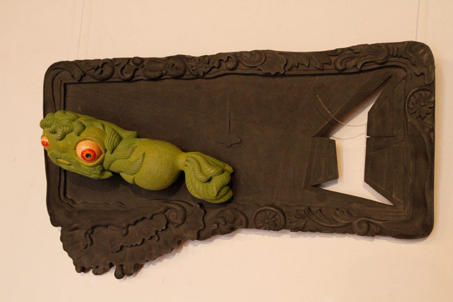 Imaginarul pe care ni-l propune Ződ astăzi nu este unul foarte la modă. Personajele fantasy imaginate și create de sculptor sunt himerele contemporanului în care putem plonja atunci când realitatea nu ne mai satisface. Lucrările Welcome home, Hide and seek, Good bye, Sugar! ne zâmbesc ironic, dar și iconic din spatele măștilor cu care artistul se identifică rezonant. Post-alegoriile lui Fehér László (Ződ) nu sunt altceva decât poveștile proiectate de fiecare dintre noi atunci când vrem să visăm. Un exercițiu vizual extrem de rafinat și de sincer.” Mihai Zgondoiu