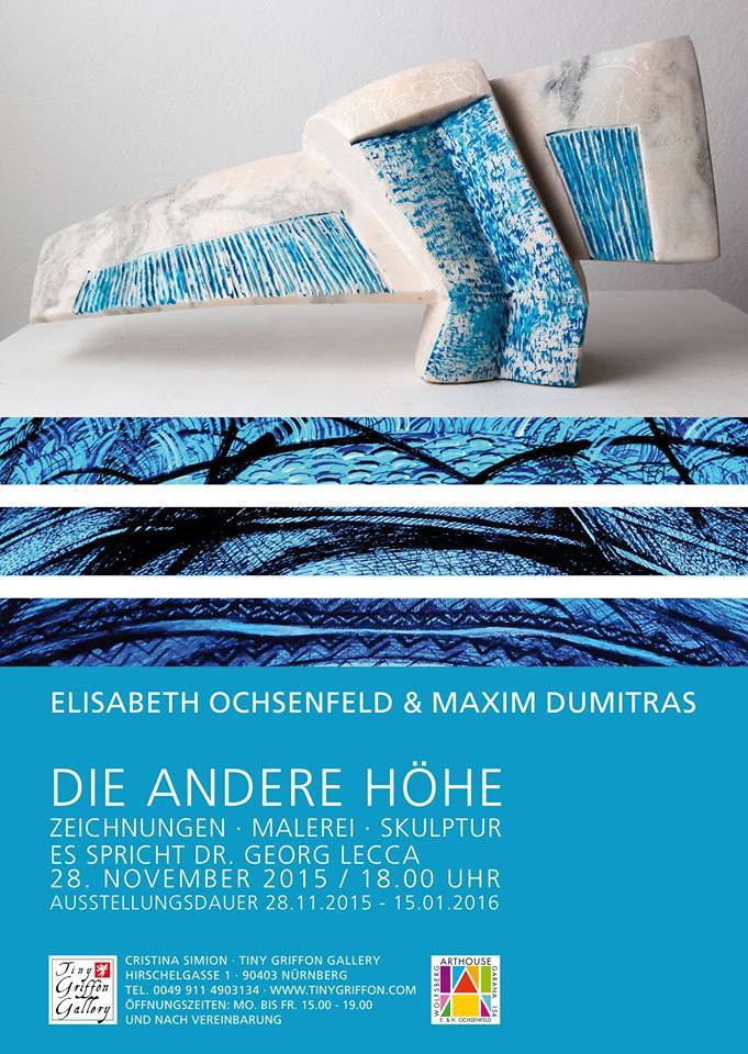 Vernisajul „Die Andere Höhe“ a artiștilor Elisabeth Lili OCHSENFELD și Maxim DUMITRAȘ, va avea loc sâmbătă, 28.11.2015, ora 18:00, la Tiny Griffon Gallery, Nürnberg, Germania.