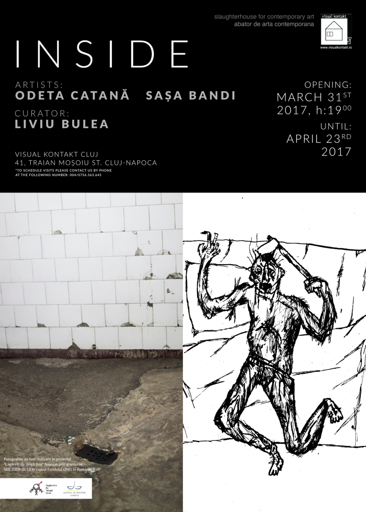 „Inside” prezintă doi artiști care abordează subiectele: instituția psihiatrică și sănătate mintală/dizabilități intelectuale, modul lor de abordare fiind din două perspective diferite. Odeta Catană, prin fotografiile sale, documentează interiorul spitalelor de psihiatrie și al persoanelor captive acolo, fotografia sa fiind fotografie de teren, iar ceea ce ne este prezentat este o realitate cât se poate de sinceră; Sașa Bandi pe de altă parte, vine cu o interpretare proprie a modului în care universul unui bolnav arată în momentul critic al unei stări psihice.