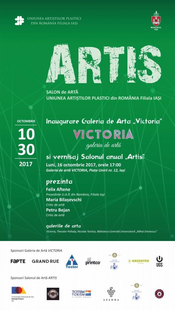 ARE PLĂCEREA DE A VĂ INVITA LA INAUGURAREA GALERIEI DE ARTĂ „VICTORIA” ȘI VERNISAJUL SALONULUI ANUAL DE ARTĂ ,,ARTIS”