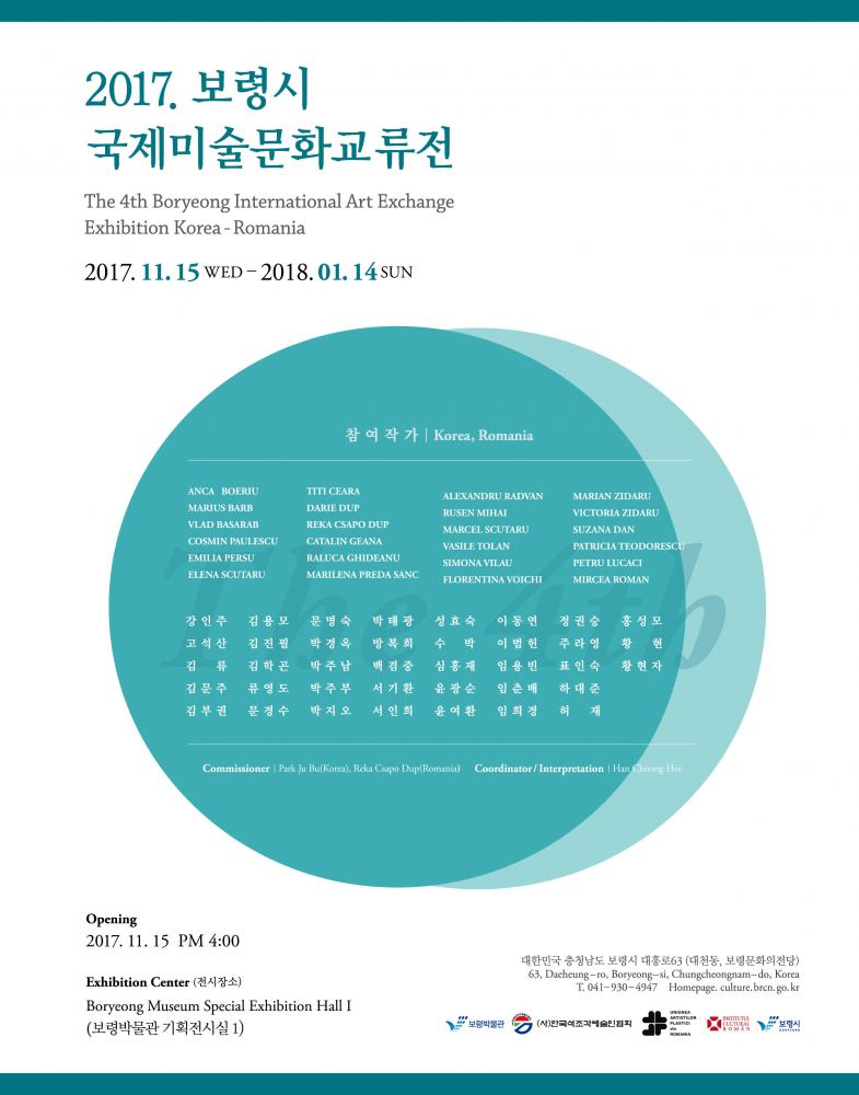 În perioada 15 noiembrie 2017 – 15 ianuarie 2018, Institutul Cultural Român, prin Uniunea Artiștilor Plastici din România, cu sprijinul Primăriei, al Consiliului local și al Muzeului de Artă din Boryeong-Si, la inițiativa Institutului de Sculptură în Piatră din Coreea, organizează a IV-a Expoziție Interculturală Româno-Coreeană, în cadrul Muzeului de Artă din Boryeong-Si, Coreea de Sud.