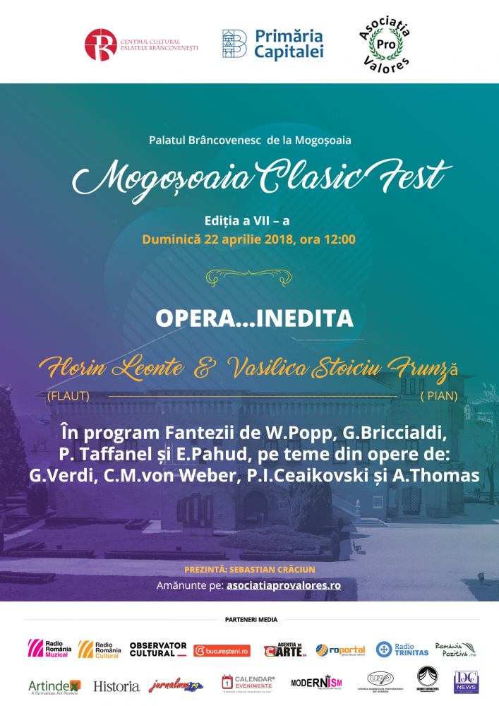 Palatul Brâncovenesc de la Mogoşoaia găzduiește duminică 22 aprilie 2018, de la ora 12, un surprinzător recital înscris în cadrul ediției a VII-a a Mogoşoaia ClasicFest, manifestare organizată de Primăria Municipiului București, prin Centrul Cultural Palatele Brâncovenești și Asociația Pro Valores.