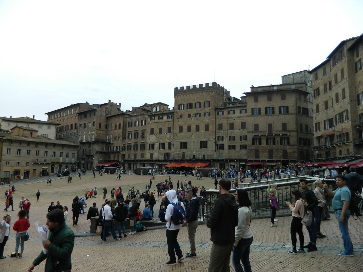 Da, Siena nu are strălucirea magnifică și nici comorile unice, de faimă mondială ale Florenței. Dar are mai multă erenitate. Din Piața Gramsci, unde te lasă autobuzul care pleacă de la gara Sienei sau chiar din Florența, sunt de ales două străzi spre centrul – Piața del Campo – acestui oraș magnific, dar discret. Pe via dei Montanini, continuată cu via Banchi, sunt magazine luxoase și un flux abundent de turiști. Pe via dei Termini nu sunt atâtea magazine, dar este fascinant să străbați orașul printre case medievale si arcade de Ev Mediu. Ambele străzi duc spre fabuloasa Piața del Campo, despre care nici un ghid nu uită să menționeze că este în formă de scoică. Da așa este, dar spațiul acestei piețeunice cu fântaâna ei și mai ales cu palatal ce rivalizează arhitectornic cu success față de cel din Florența, este binecuvântat, prietenos și cu adevărat ospitalier, fie doar prin numeroasele restaurante, pizzerii sau osterii care o străjuiesc.