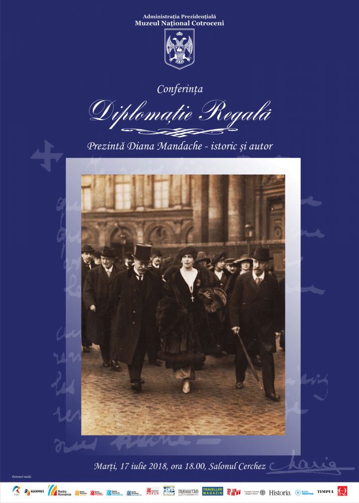 Programul debutează miercuri, 17 iulie, ora 18.00, în Salonul Cerchez, cu conferința „Diplomație Regală” susținută de istoricul Diana Mandache, în cadrul căreia va fi ilustrat rolul Reginei Maria ca ambasador informal al României. Prezentarea va aduce în atenția publicului aspecte, poate mai puțin cunoscute, despre acțiunile Reginei Maria din 1919 pentru susținerea cauzei României la Conferința de Pace de la Paris și maniera în care legăturile sale cu Familiile Regale europene au contribuit la recunoașterea Marii Uniri.