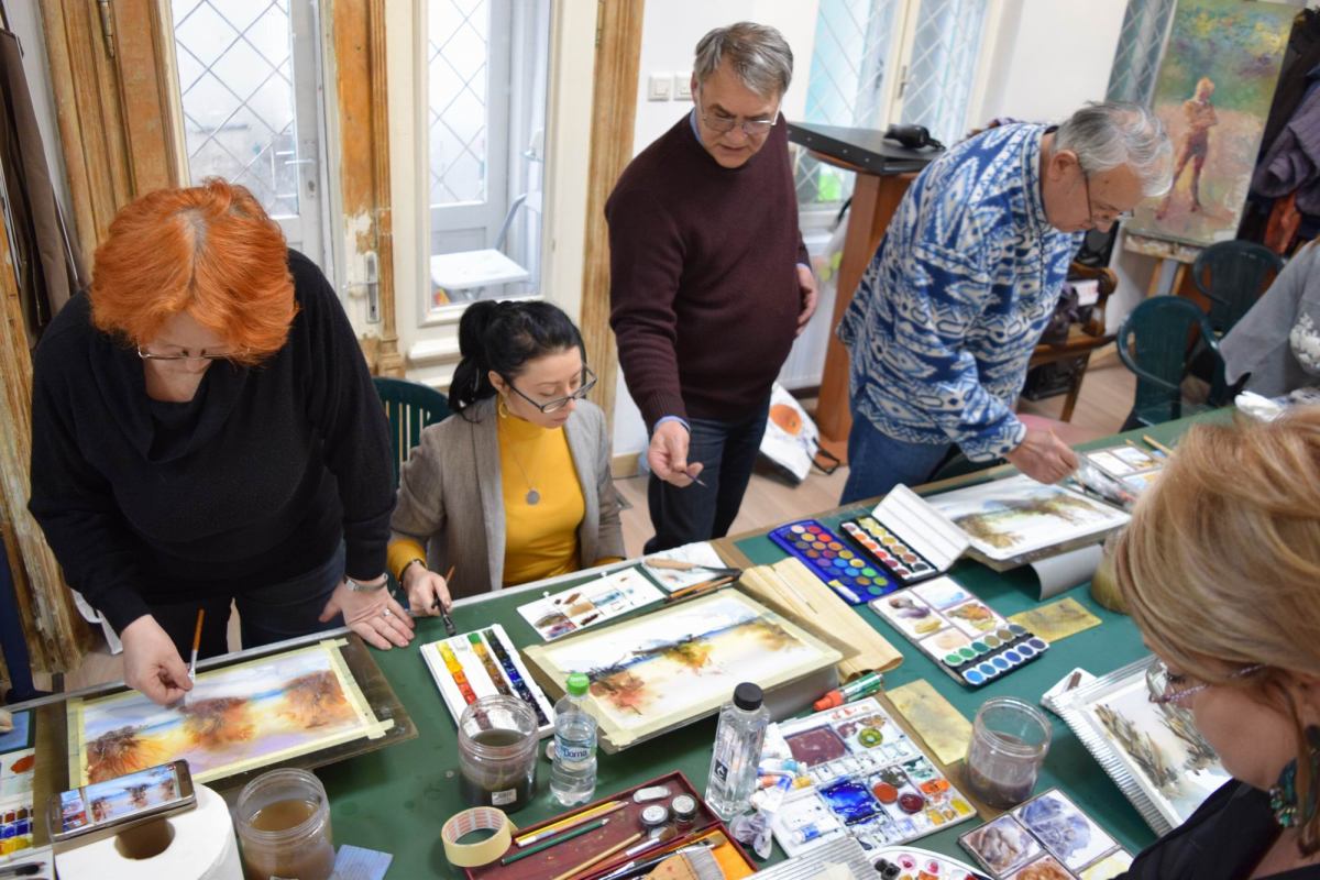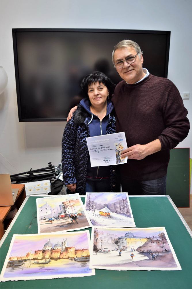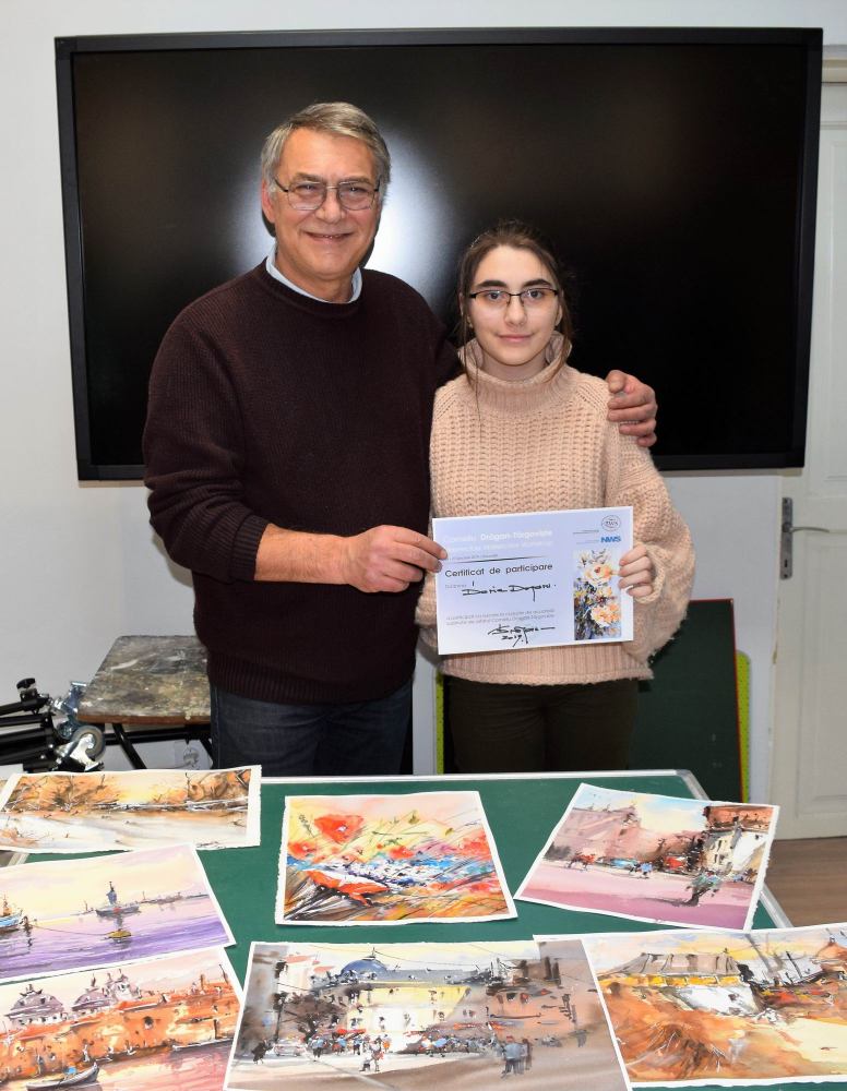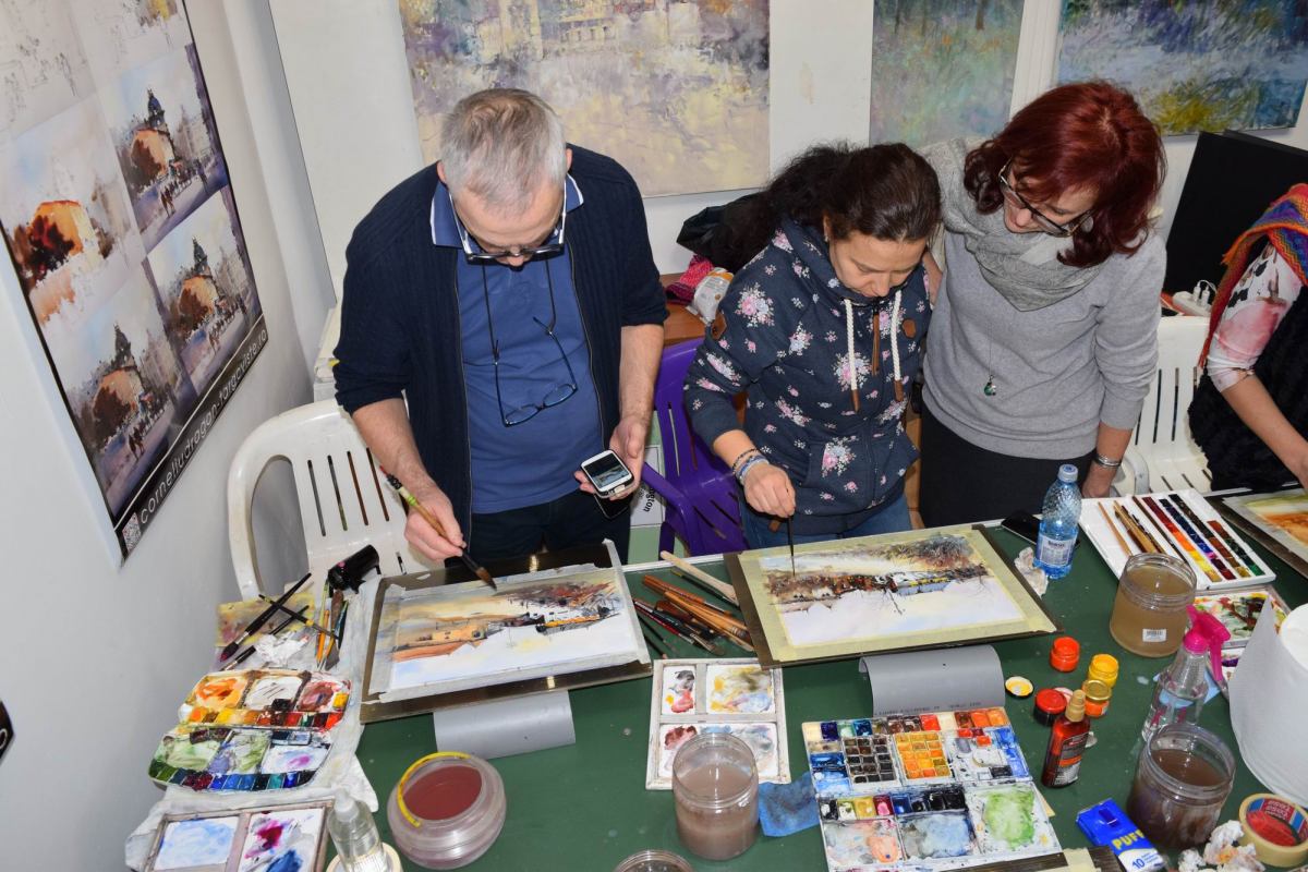 Artistul Corneliu Drăgan-Târgoviște, recunoscut și premiat pe plan internațional este specialist în acuarelă. Într-adevăr el poate da lecții; la propriu!