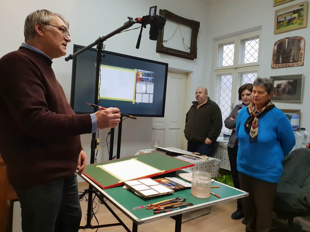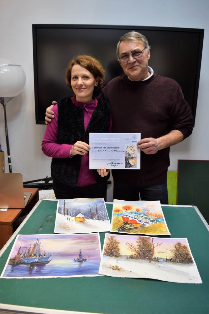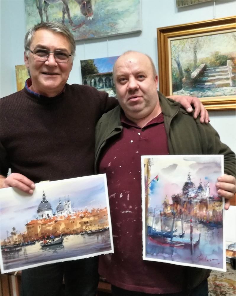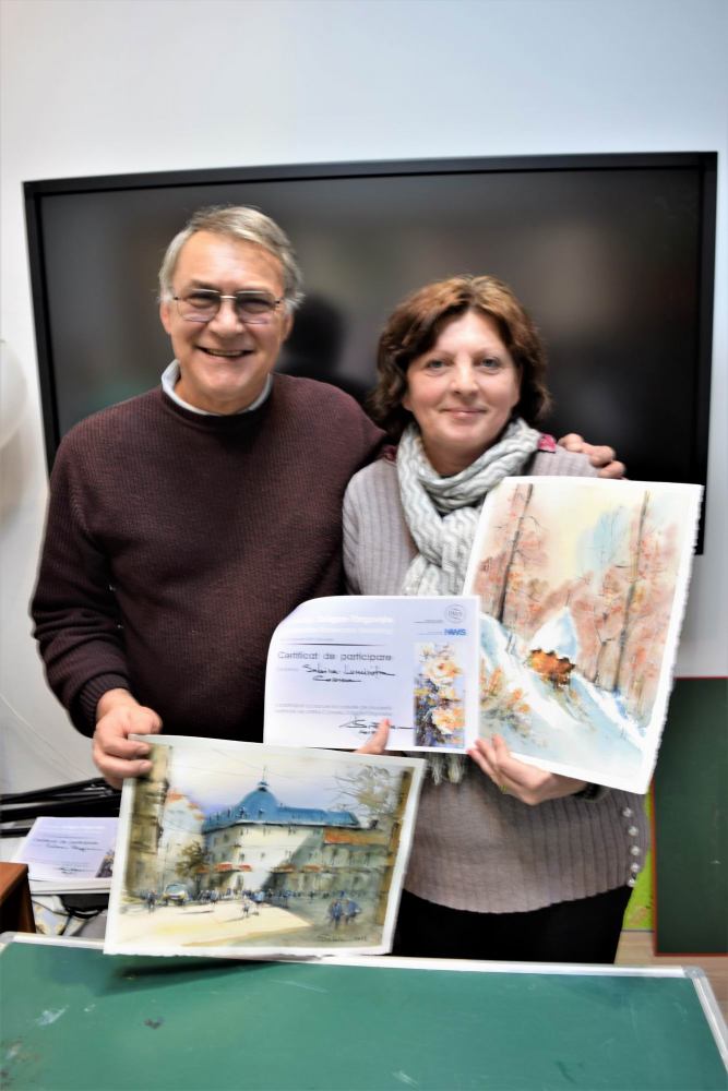 Artistul Corneliu Drăgan-Târgoviște, recunoscut și premiat pe plan internațional este specialist în acuarelă. Într-adevăr el poate da lecții; la propriu!