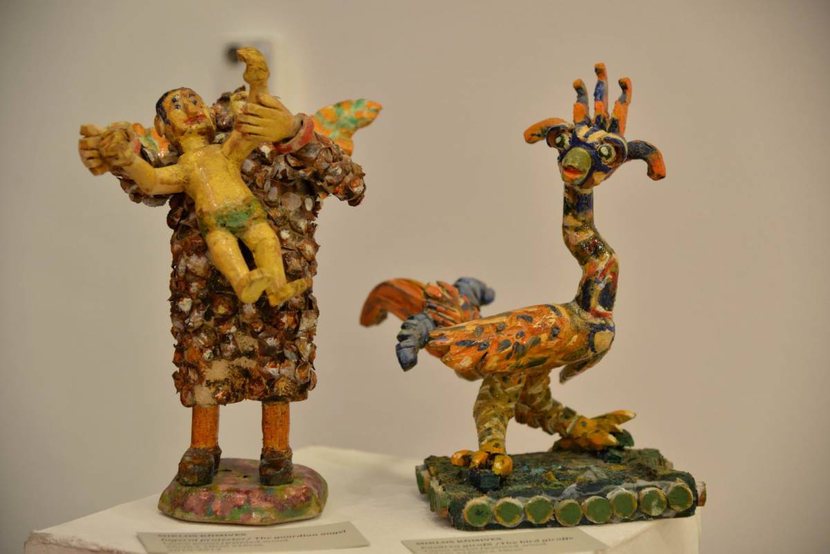 Miklos Kőmives, (n. Aiud 1927 – d. 2013 Aiud) a fost un artist autodidact, dotat cu mult umor și poezie situat în zona artei brute, naive. Lucrările rămase de la el sunt sculpturi de mici dimensiuni din lemn pictat, prin care se dezvăluie o lume arhaică a copilăriei, populată cu tot felul de personaje reale sau fantastice, animale, păsări și îngeri,într-o viziune de mare forță expresivă și libertate. Ca tehnică de lucru a exploatat fie anumite forme naturale pe care le-a integrat în lucrările sale, fie a cioplit anumite fragmente pe care le-a asamblat. Culoarea pe formă este cea care dă savoare acestor mici obiecte.