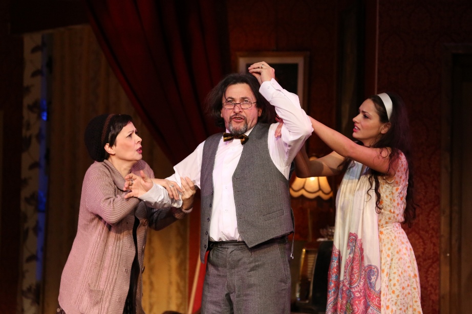În week-end, vă invităm să vizionați piesa Dumnezeu se îmbracă de la second-hand de Iulian Margu, regizată de Ion Caramitru.