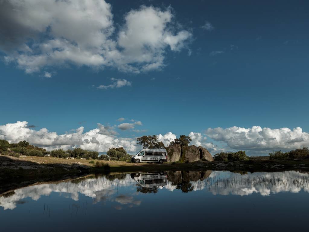 „Pandemia ne-a prins în Portugalia, în autorulotă, în timp ce lucram la proiectul nostru despre românii din diaspora. Înainte și în timpul perioadei de izolare, pe care am petrecut-o, o parte din ea pe malul lacului Alqueva și o parte din ea la mănăstirea ortodoxă română din Aldeia de Santa Margarida, am început să fotografiez peisaje. Să fotografiez peisaje a fost un mod de relaxare pentru mine. De regulă, fotografiez portrete pentru proiectele mele documentare. Primul lucru care m-a frapat în Portugalia a fost lumina. E o lumină specială aici, e total diferită față de lumina pe care am întâlnit-o în alte țări cu ieșire la mare sau la ocean. Peisajele acestea mi-au adus liniște într-o perioadă în care eu și toată lumea din jurul meu ne luptam cu anxietatea”, explică Cosmin Bumbuț.