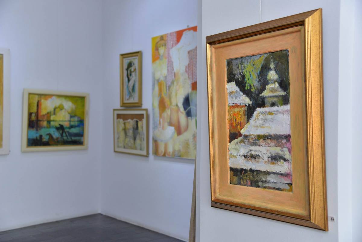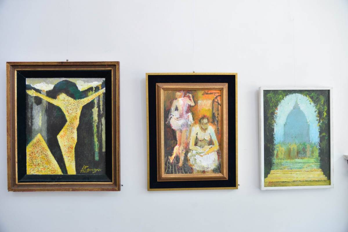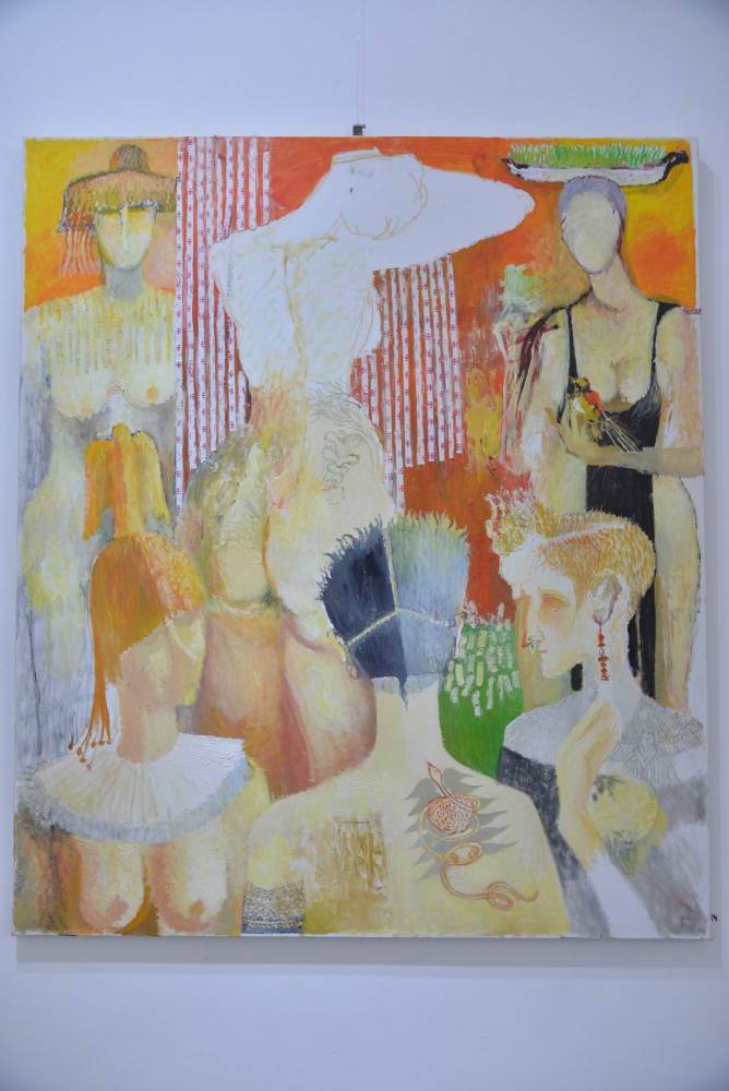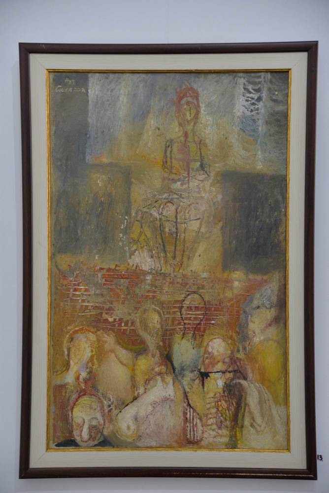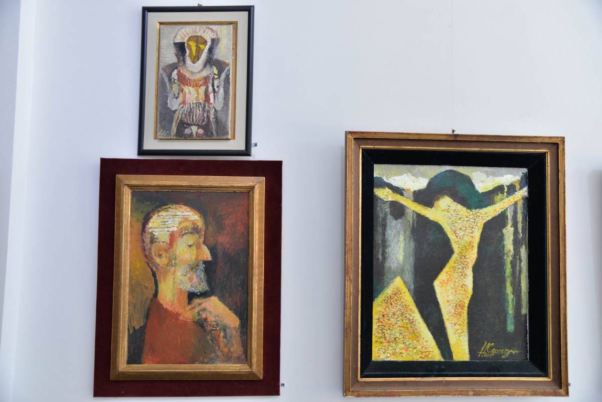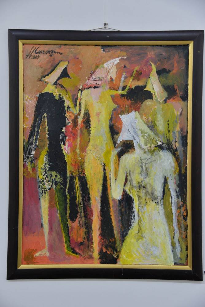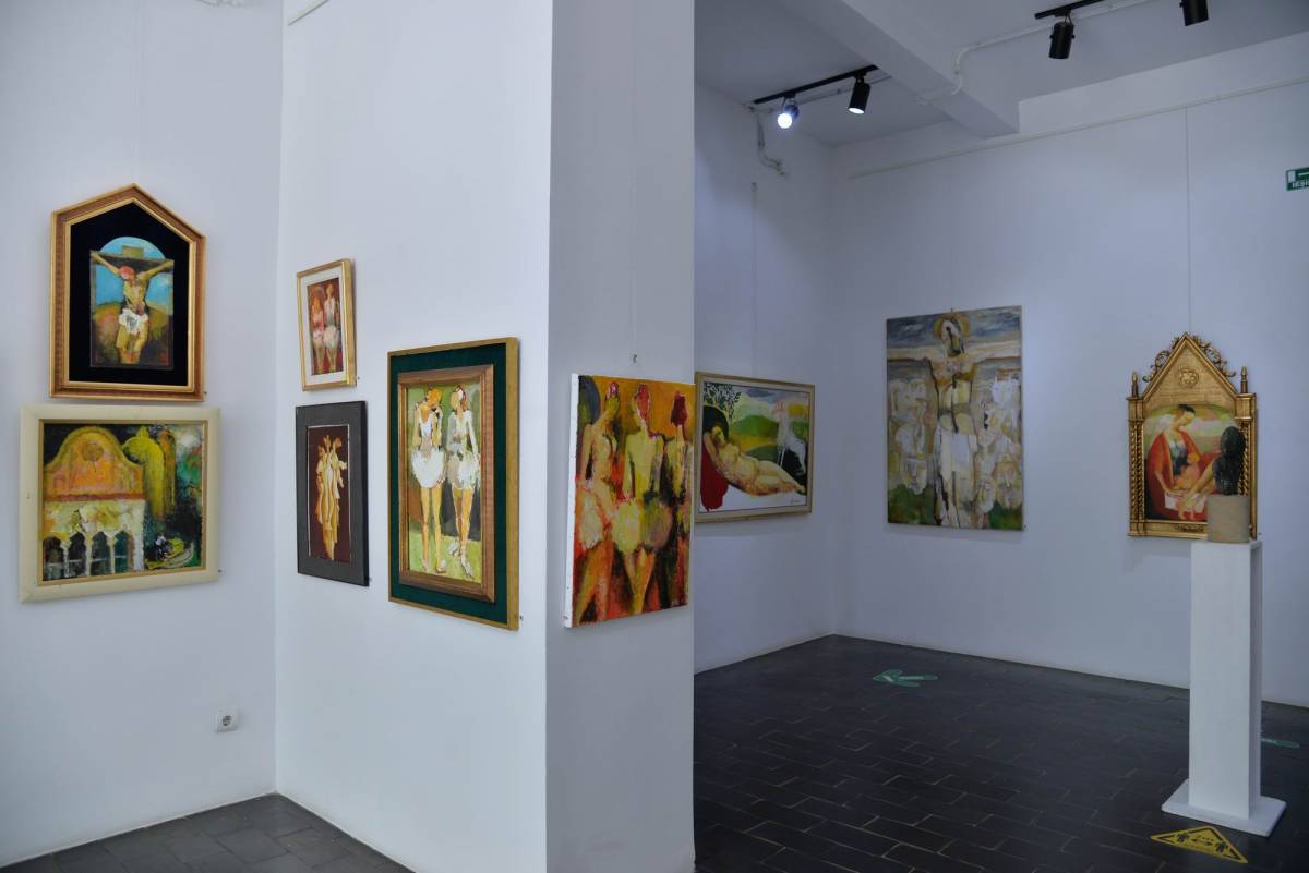 Sunt expuse lucrări diverse, cu teme religioase sau portret, nud, compoziții, citadine, unele din anii ’60, din perioada studenției, până la cele mai recente din 2019, dintr-o serie cu preocupări tematice precum civilizații sau inspirate din arta rupestră.