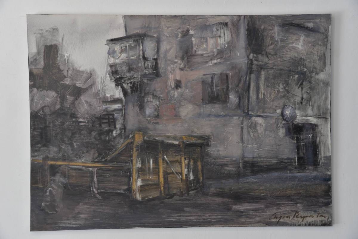 Artistul prezintă pe lângă pictură și o instalație prin care recreează atmosfera de acasă. Patul din sufragerie, măsuța, fotoliul, vechiul televizor, carpeta de pe perete flancată de fotografii de familie, păpuși și alte jucării care îți găsesc locul peste tot, alături de o mică chicinetă, cu ustensile de gătit, oale, linguri, căni, reșou… Toate acestea, împreună cu picturile transmit un mesaj identitar elocvent.