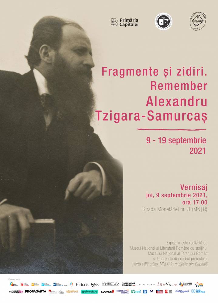 Muzeul Național al Literaturii Române, în parteneriat cu Muzeul Național al Țăranului Român, vă așteaptă joi, 9 septembrie 2021, ora 17.00, la Sala Acvariu, la vernisajul expoziției Fragmente şi zidiri. Remember Alexandru Tzigara-Samurcaș, dedicată fondatorului Muzeului de la Șosea.