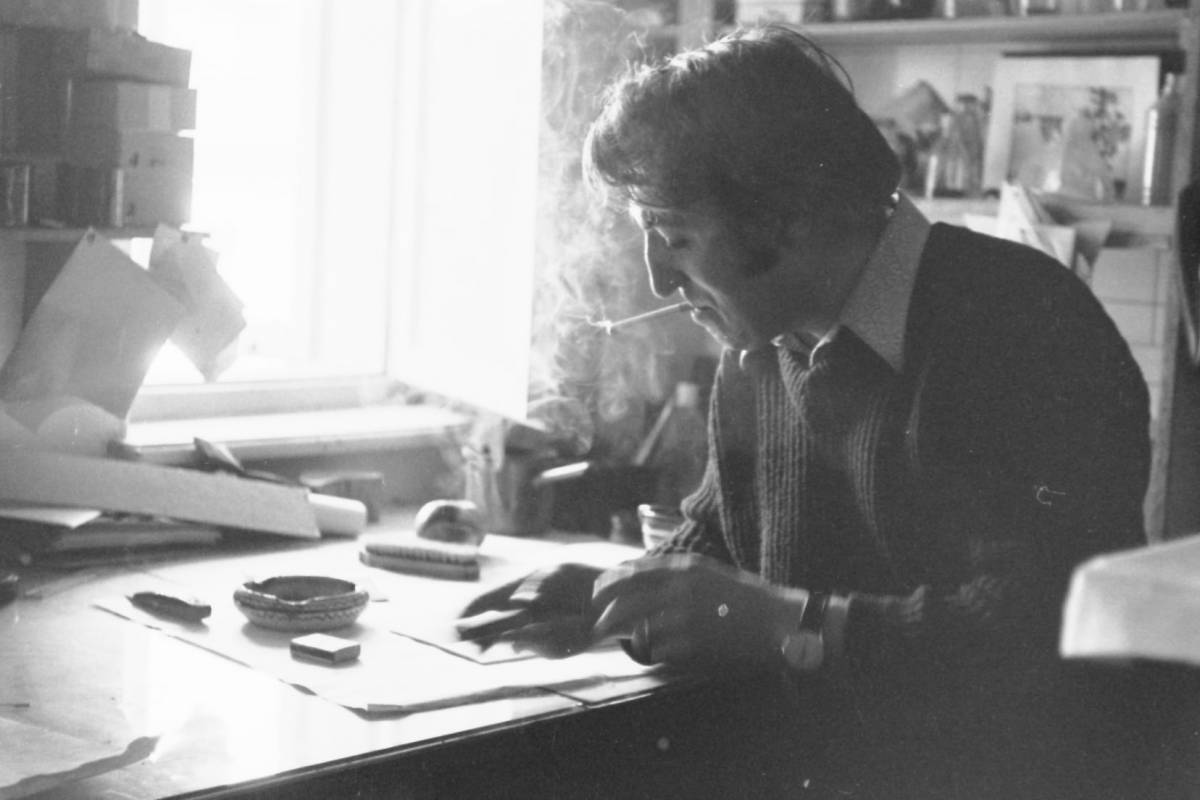 Graficianul George Leolea in atelier, anii `70, Foto credite Eugeniu Lupu