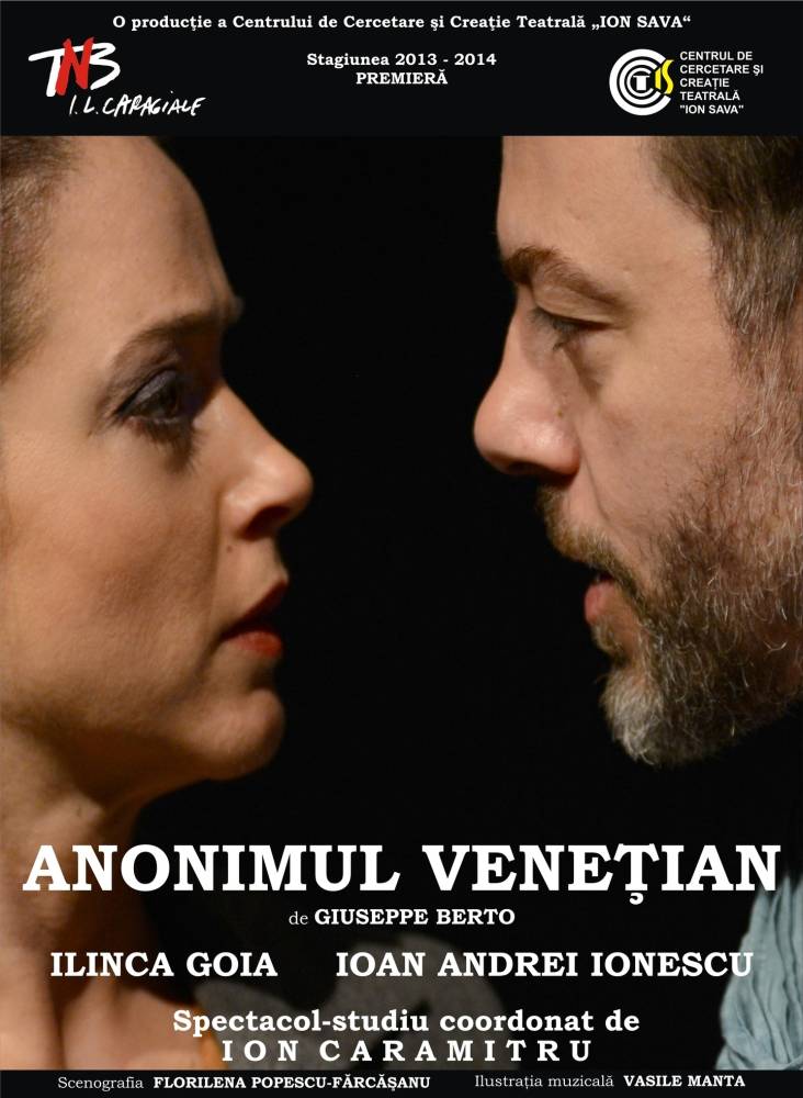 Dacă nu aţi văzut până acum Anonimul veneţian, vă invităm să urmăriţi programul TNB şi să vă rezervaţi locurile dorite pentru una din reprezentațiile viitoare. Următorul spectacol este programat pentru data de 3 februarie, ora 20.00, la Sala Atelier.