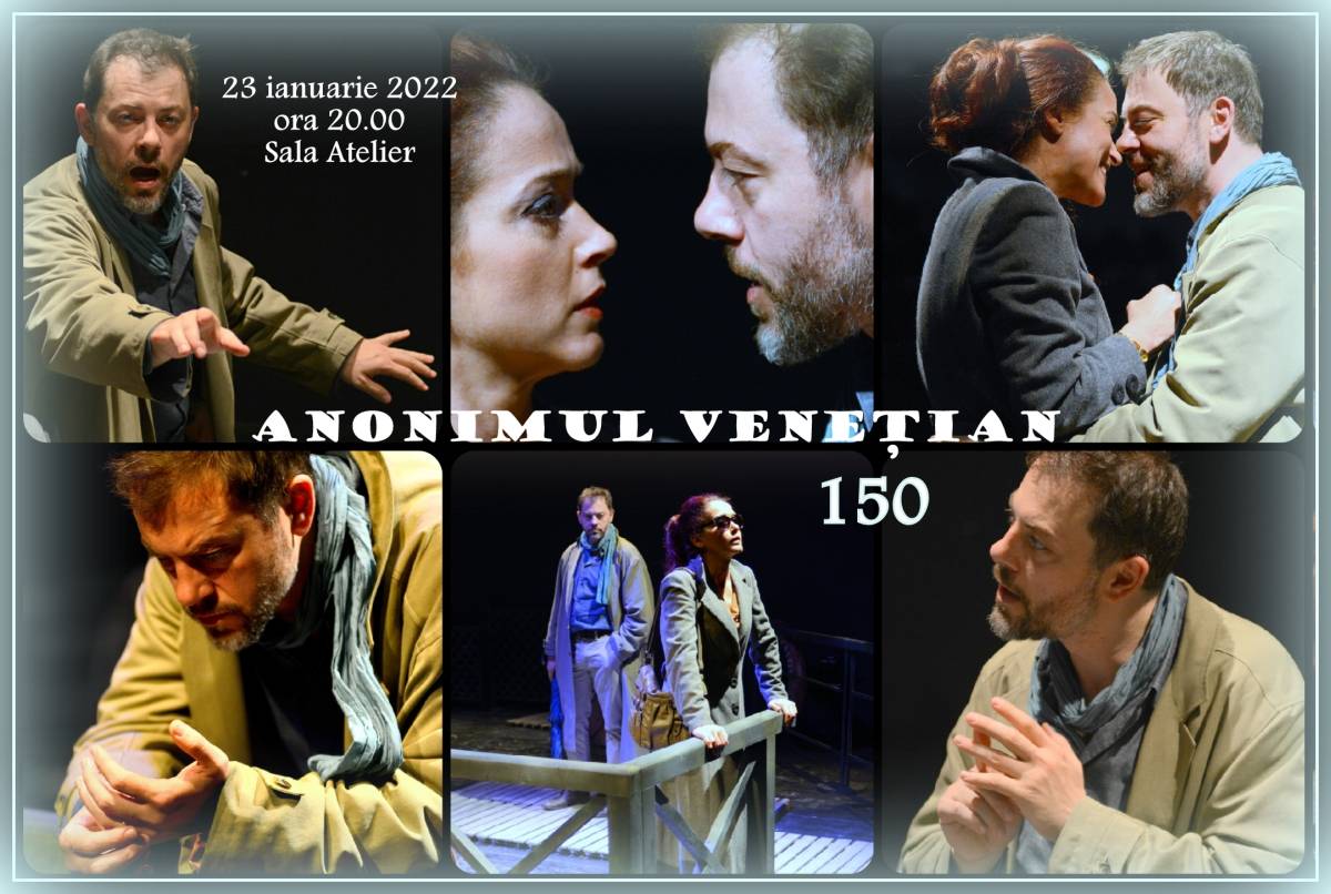 Numit „exerciţiu cu vedere la public”, Anonimul venetian – proiectul pe care Ion Caramitru l-a coordonat regizoral în anul 2014, se va juca duminică, 23 ianuarie 2022, pentru cea de-a 150-a oară, la Sala Atelier! Longevitate excepțională ce atestă calitatea acestui spectacol cu un succes de public mereu reconfirmat.