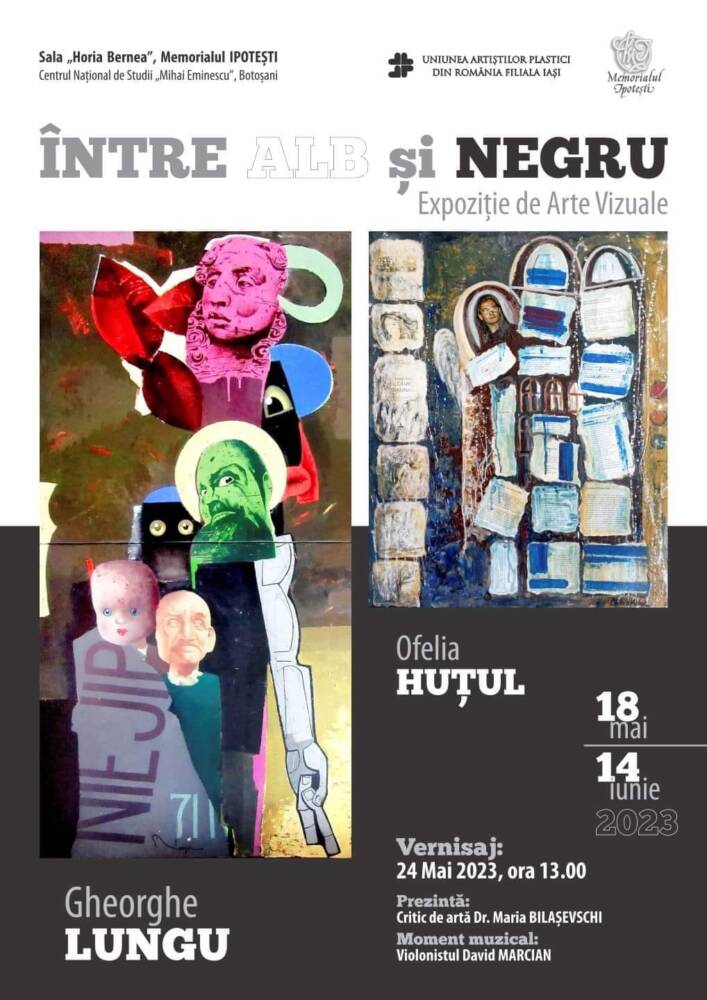 Uniunea Artiștilor Plastici din România – Filiala Iași are plăcerea de a vă invita să vizitați în perioada 18 Mai – 14 Iunie 2023 expoziția de arte vizuale „Între Alb și Negru – Between White and Black” semnată de artiștii Ofelia Huțul și Gheorghe Lungu.