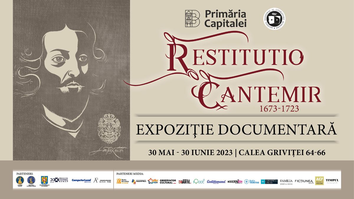 Muzeul Național al Literaturii Române vă invită miercuri, 31 mai 2023, ora 12.00, la vernisajul expoziției foto-documentare Restitutio Cantemir (1673-1723), organizată în sălile „Al. Condeescu” și „Al. Oprea”, la sediul din Calea Griviței 64 – 66.