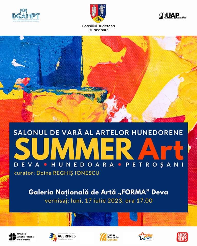 SALONUL DE VARĂ AL ARTELOR HUNEDORENE | S U M M E R A r t | Expun membri ai Uniunii Artiştilor Plastici din România din Deva, Hunedoara şi Petroşani | vernisaj: luni, 17 iulie 2023, ora 17.00 | Galeria Națională de Artă „FORMA” | Bd. Devebal, nr.8, 330012, Deva.