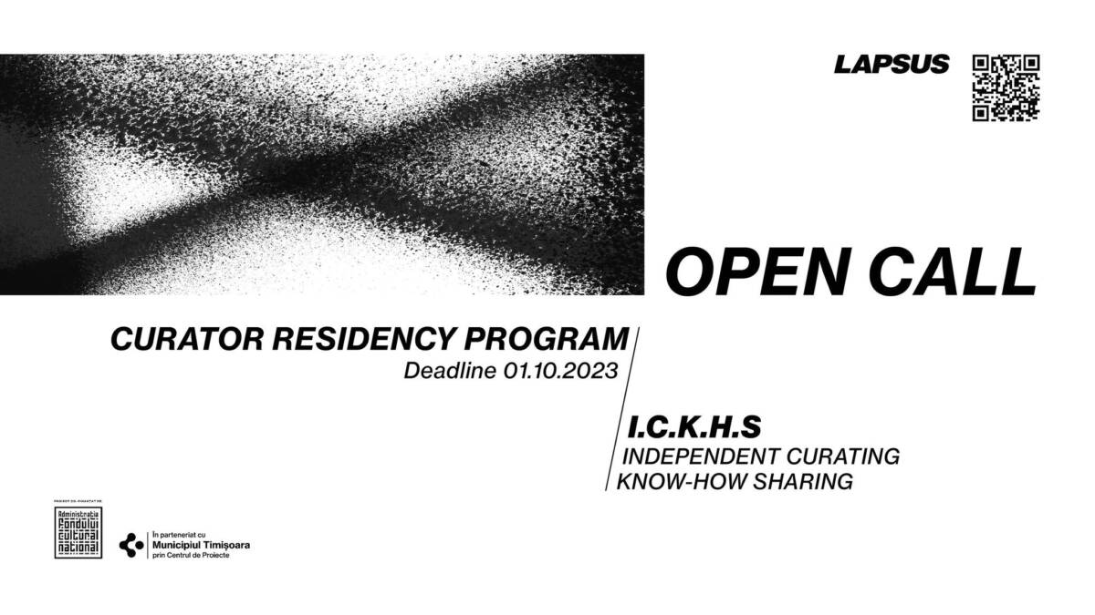 Lapsus lansează programul de rezidențe I.C.K.H.S. – Independent Curating Know-How Sharing, primul open call orientat către curatori emergenți cu scopul de a crea un format de întâlniri pentru schimb de cunoștințe, dialog și dezvoltarea ideilor prin practică. Programul de rezidențe se va desfășura din 5 octombrie până pe 20 decembrie, iar perioada înscrierilor este deschisă până duminică, 1 octombrie.