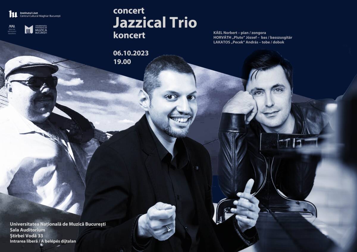 Vineri, 6 octombrie tot de la ora 19.00 Universitatea Națională de Muzică București găzduiește în Sala Auditorium un trio format din soliști de talie mondială, și anume Káel Norbert – pian, Jónás Géza – contrabas, Lakatos „Pecek” András – tobe. Este vorba de Jazzical Trio care cântă muzică clasic-jazz fusion într-o abordare nouă.