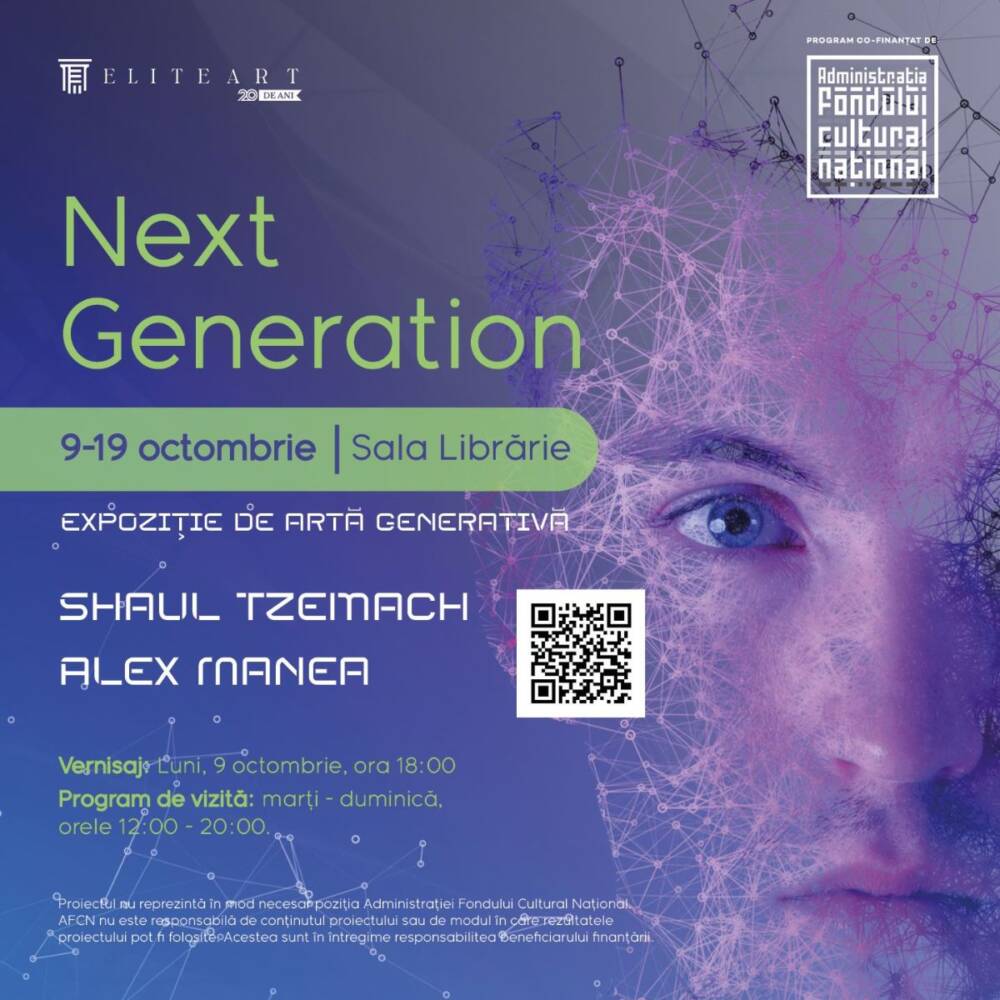 Asociația Elite Art Club organizează luni, 9 octombrie, ora 18:00, în Sala Librărie, de la ARCUB – Centrul Cultural al Municipiului București, vernisajul expoziției de artă generativă ce reunește lucrările realizate de participanții din cadrul proiectului NextGeneration. Expoziția va fi deschisă publicului larg, cu intrare gratuită, în perioada 9-19 octombrie, în conformitate cu programul de vizitare al ARCUB – Centrul Cultural al Municipiului București, de marți până duminică, între orele 12:00 – 20:00.