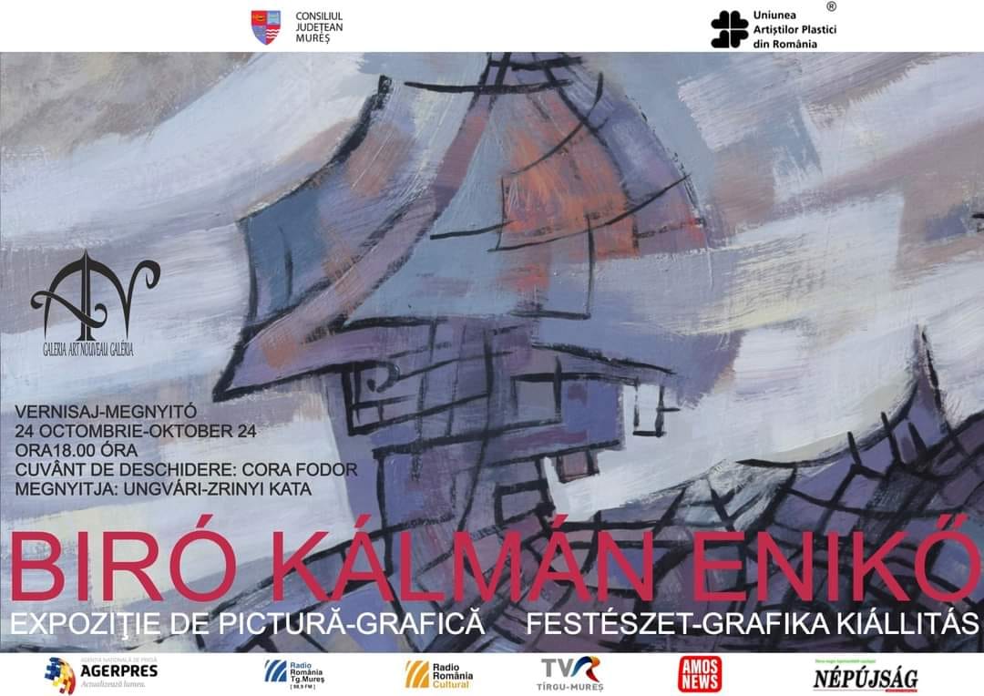 Marți 24 octombrie, la ora 18, Galeria Art Nouveau din Târgu Mureș va găzdui vernisajul Expoziției de pictură si grafică a artistei Bíró Kálmán Enikő. Cuvânt de deschidere – Cora Fodor.