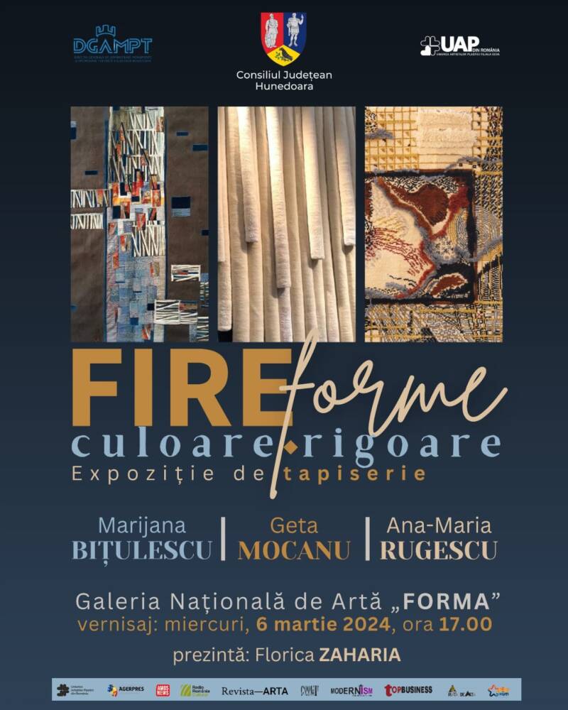 Expoziție de tapiserie | Expun: MARIJANA BIȚULESCU, GETA MOCANU și ANA-MARIA RUGESCU | vernisaj: miercuri, 6 martie 2024, ora 17.00 | Galeria Națională de Artă „FORMA” | Bd. Decebal, nr.8, 330012, Deva.