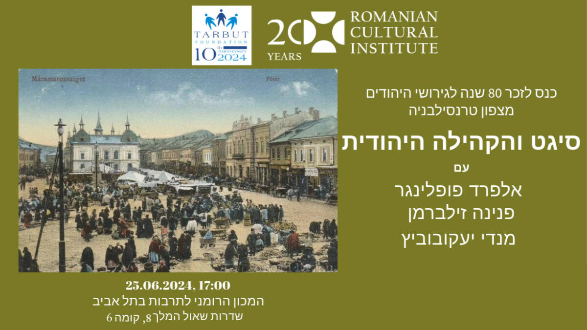 Institutul Cultural Român de la Tel Aviv va organiza și găzdui, în data de 25 iunie 2024, de la ora 17:00, conferința „Sighetu Marmației și comunitatea evreiască”, susținută de Alfred Poplingher, Peninah Zilberman și Mandi Jacobovitch.