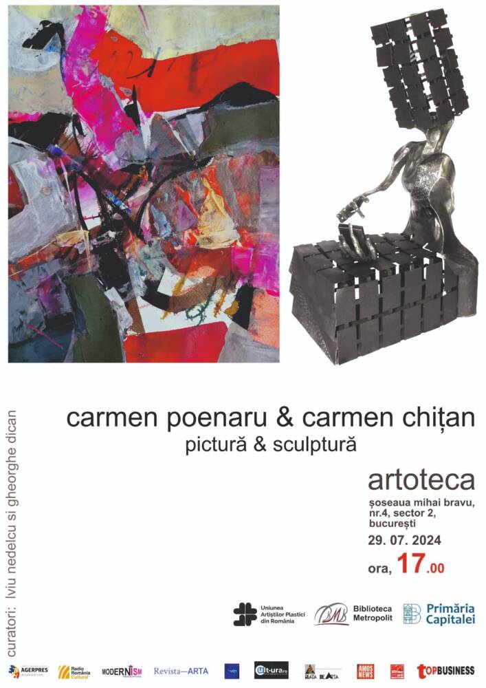 Luni, 29 iulie 2024, la ora 17.00, la Galeria ARTOTECA BMB, din Șoseaua Mihai Bravu nr. 4, Sector 2, București, va avea loc vernisajul expoziției Carmen Poenaru & Carmen Chițan / pictură & sculptură