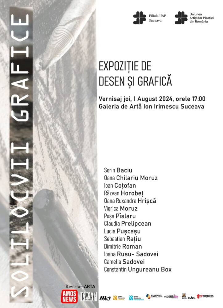 Joi, 1 august 2024, la Galeria de Artă “Ion Irimescu” din Suceava, va avea loc vernisajul expoziției de desen și grafică a membrilor Filialei UAP Suceava.