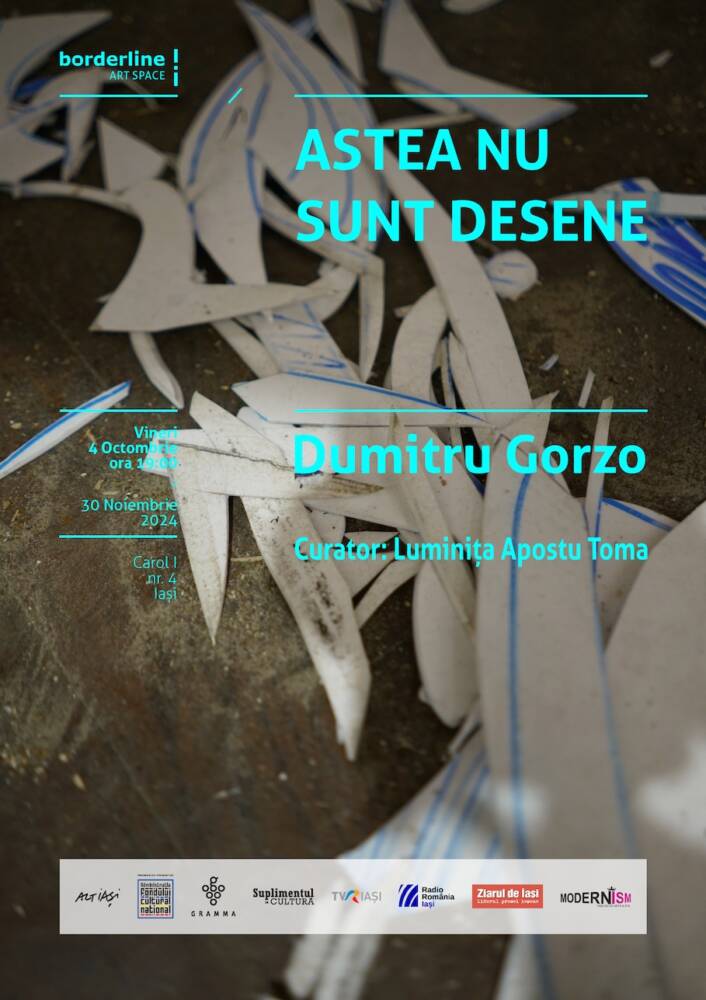 Borderline Art Space găzduiește vineri, 4 octombrie, începând cu ora 19, deschiderea primei expoziții a artistului Dumitru Gorzo la Iași. Curatoriată de Luminița Apostu Toma, expoziția este intitulată „Astea nu sunt desene” și poate fi previzualizată joi, 3 octombrie, de la ora 19. Lucrările vor rămâne în galeria ieșeană până pe 30 noiembrie.