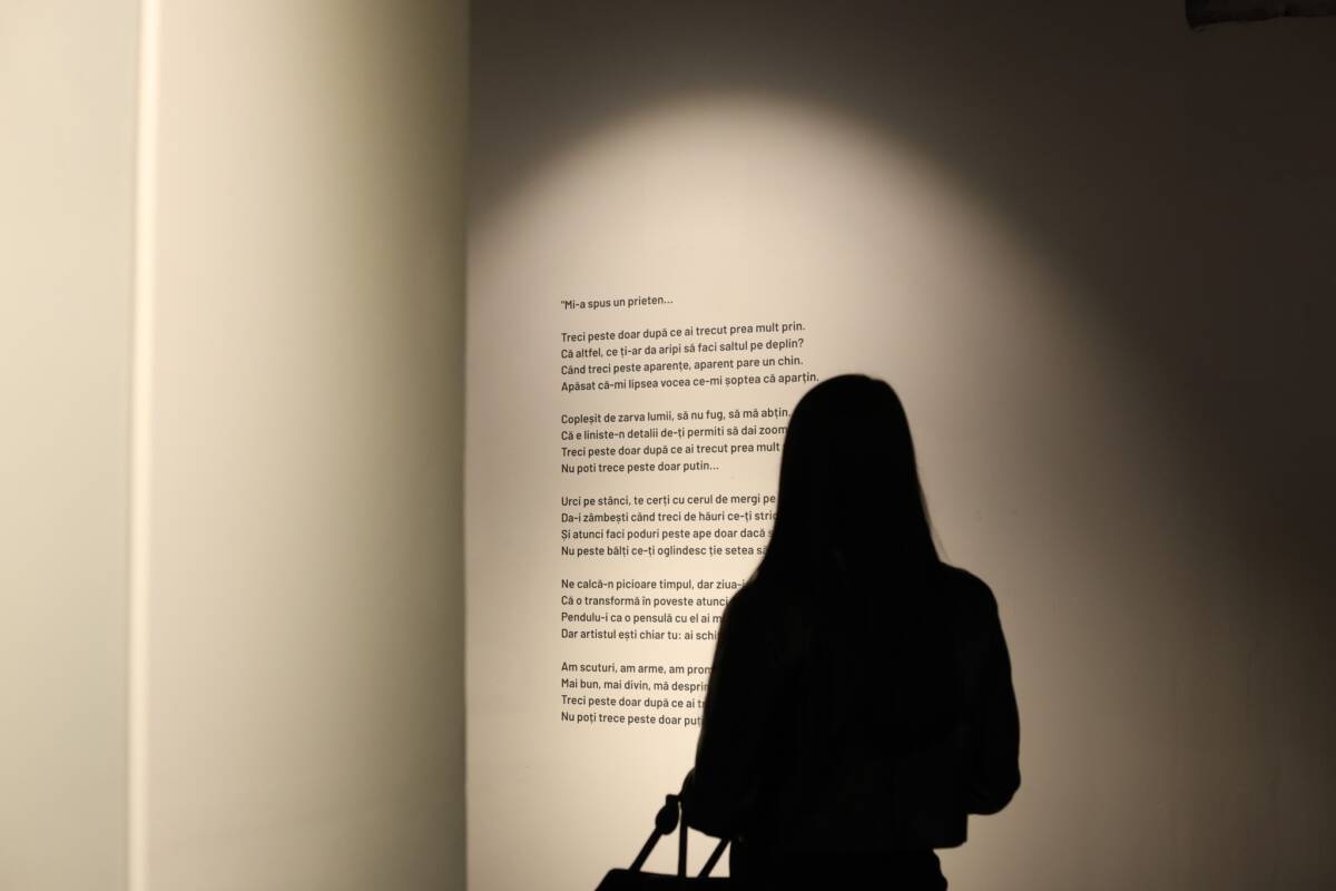 Lucrarea este cu atât mai relevantă cu cât Deliric semnează și textul poetic ce însoțește expoziția – o intervenție literară care funcționează ca dispozitiv de interpretare. Repetiția versului „Treci peste doar după ce ai trecut prea mult prin” funcționează ca o cheie de lectură, dar și ca o invitație la introspecție, la asumarea rănilor și transformarea lor în forță.