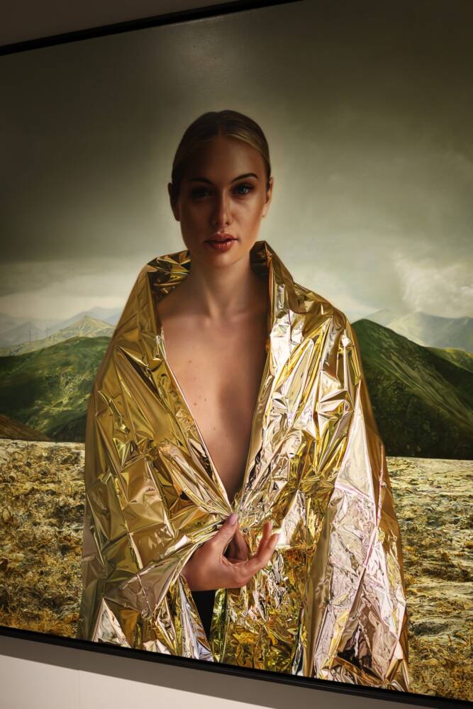 Corpul uman, în special chipul, devine în această serie un spațiu de proiecție psihologică. Figurile sunt tratate cu o rigoare formală remarcabilă, dar ceea ce interesează este mai puțin asemănarea cu modelul și mai mult forța evocatoare a privirii. Personajele sunt surprinse într-un registru static, iar prezența folie termoizolante – material de salvare și de protecție – introduce o dialectică între interioritate și exteriorizare, între expunere și camuflaj.