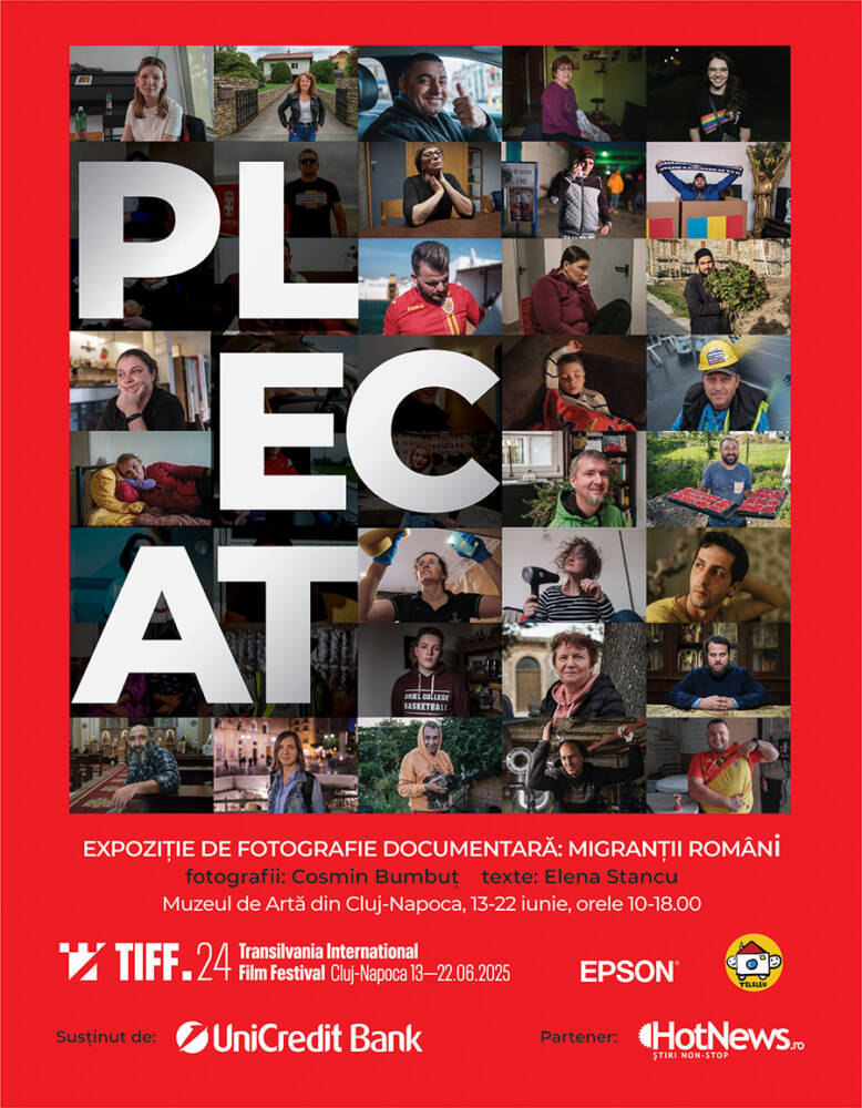 Muzeul de Artă Cluj-Napoca, instituție publică de interes județean, care funcționează sub autoritatea Consiliului Județean Cluj, vă invită să vizitați, în perioada 13-22 iunie 2025, expoziția „PLECAT”, semnată de fotograful Cosmin Bumbuț și jurnalista Elena Stancu, organizată în cadrul Festivalului Internațional de Film Transilvania (TIFF).