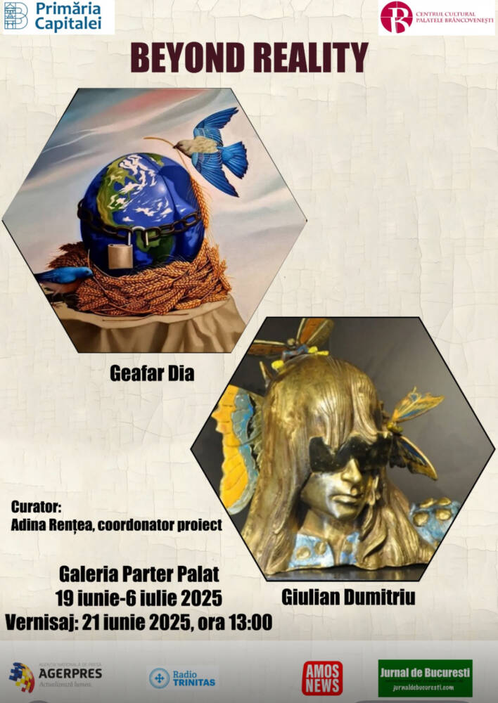 „Sâmbăta, 21 iunie 2025, ora 13:00, la Centrul de Cultură „Palatele Brâncoveneşti de la Porțile Bucureștiului” – Galeria Parter Palat, se va deschide expoziţia Beyond Reality, primul dialog artistic de pictură şi sculptură al artiştilor Geafar Dia şi Giulian Dumitriu. Un duo artistic, care leagă două lumi, dar care spune aceeaşi poveste: arta, ca unicul mod de a trăi şi vibra!