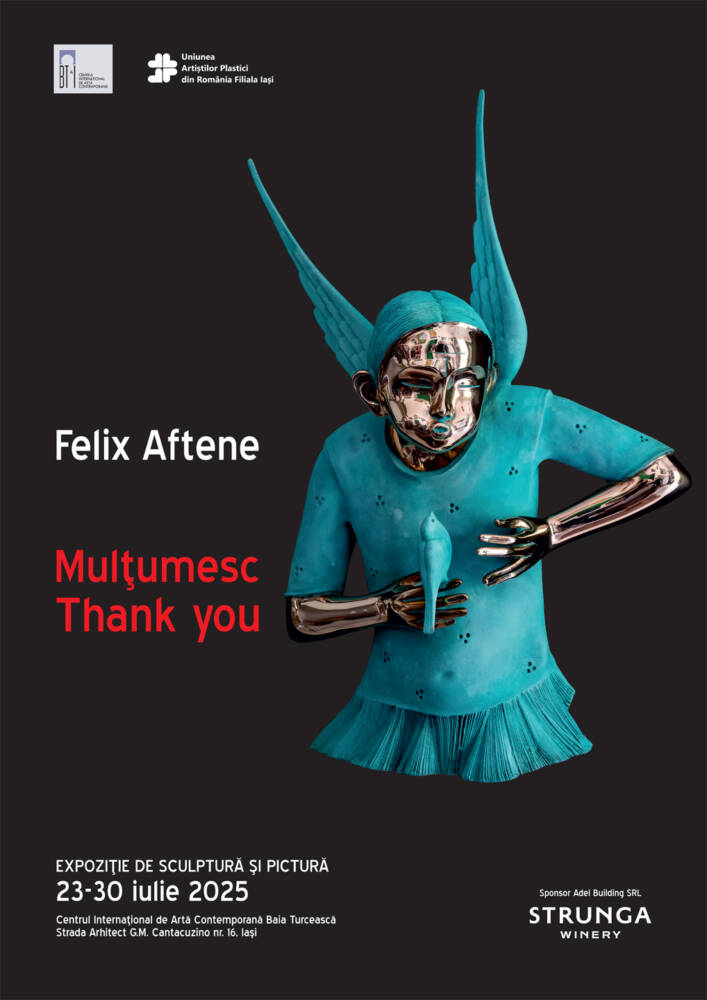 Uniunea Artiștilor Plastici din România Filiala Iași și Centrul Internațional de Artă Contemporană – Baia Turcească din Iași au plăcerea de a vă invită la expoziția de sculptură și pictură intitulată „Mulțumesc” semnată de artistul Felix Aftene